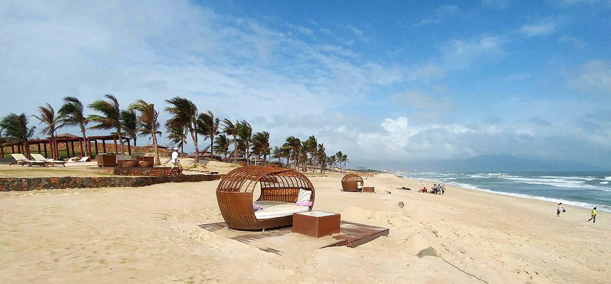 Fusion Resort度假酒店離市中心約40分鐘車程。 獨霸芽莊灣南端的一個小海灘。有50間客房,分佈在寧靜的沙灘上 。我們的客房坐落在山上。有一廳兩房,開揚的露台花園及睡房都可以欣賞蔚藍海景,由於有椰樹及地形等天然屏障作掩,都夠保存私隱。所以酒店亦被評為越南十大最佳酒店之一。海灘距离住宿亦衹有2分鐘步行路程。
