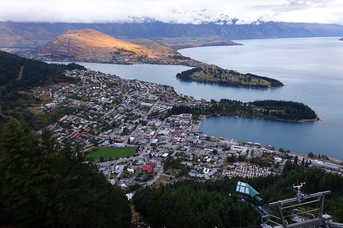 我們 於黃昏乘 Skyline纜車上山頂俯瞰整個皇后鎮, 瓦卡蒂普湖 Wakatipu 與四周未融雪山頂 的壯麗日落景色。