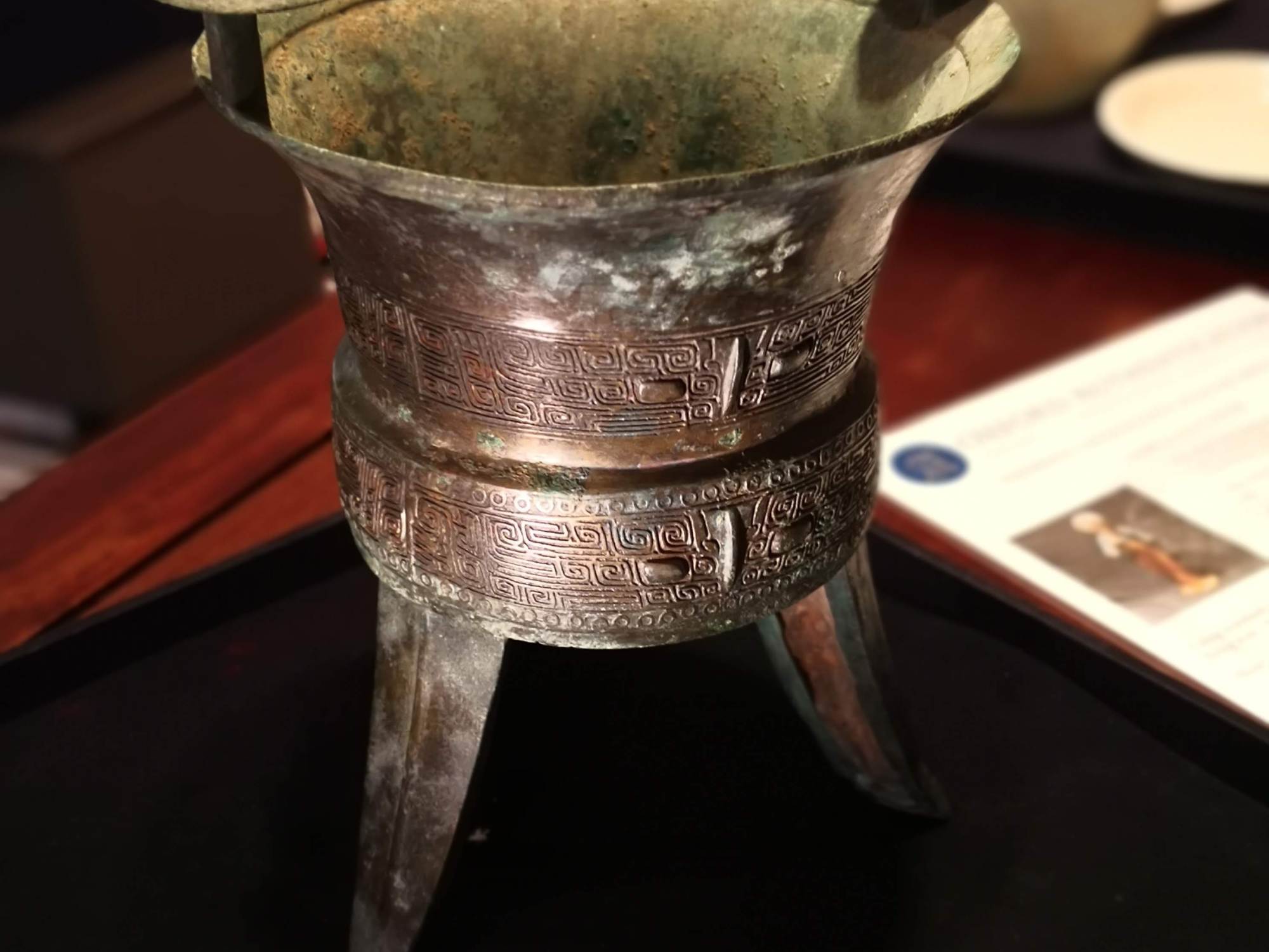 之後他又攞出他珍藏的青銅酒器包括爵、觚 和斝(讀甲) 並教我們如何欣賞。