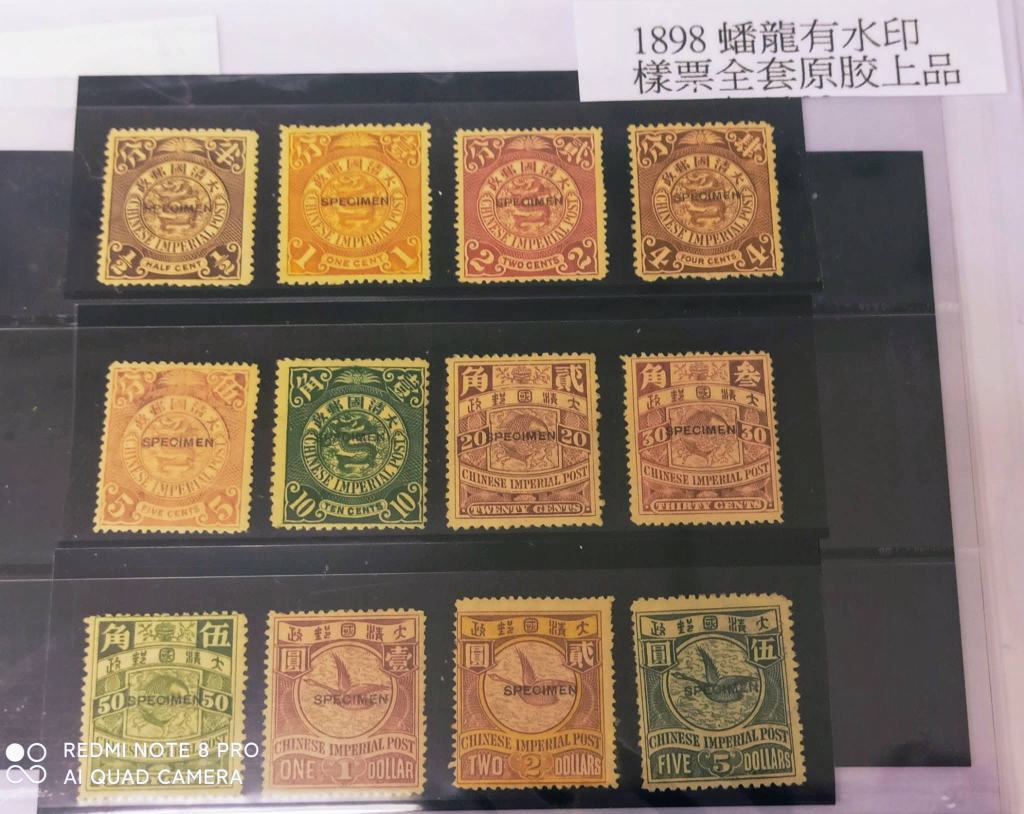 他這套1898年郵票是清朝蟠龍樣票全套原膠上品, 超過100年了。