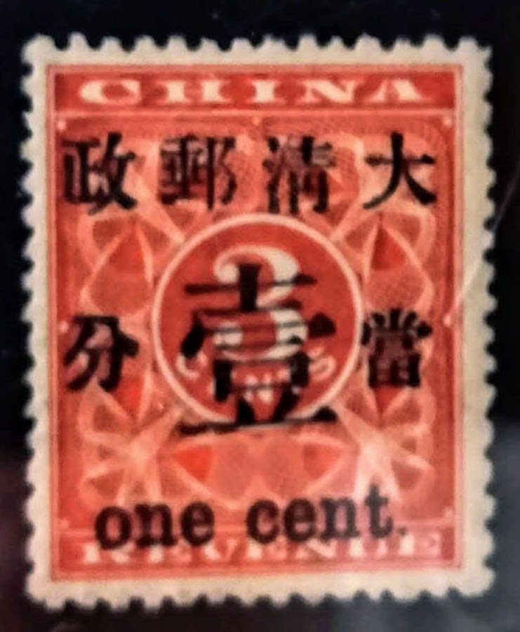 小字肆分郵票百餘枚,紅印花郵票名列中國珍郵之首,有「東方最珍貴郵票」之稱。2004年12月7日在香港蘇黎世亞洲(ZurichAsia)秋季郵品拍賣會上,一枚紅印花綠色加蓋暫作小字2分郵票以345萬港幣成交,而紅印花小字當壹圓更在2013年北京拍賣會,以577.3萬元人民幣成交(折合港幣722.8萬元)。之後清朝海關郵政 加印數萬枚供用 ,改用較大的字體加蓋, 所以這枚郵票又叫做大壹元, 因數量多, 和小壹元 價值相差很遠。