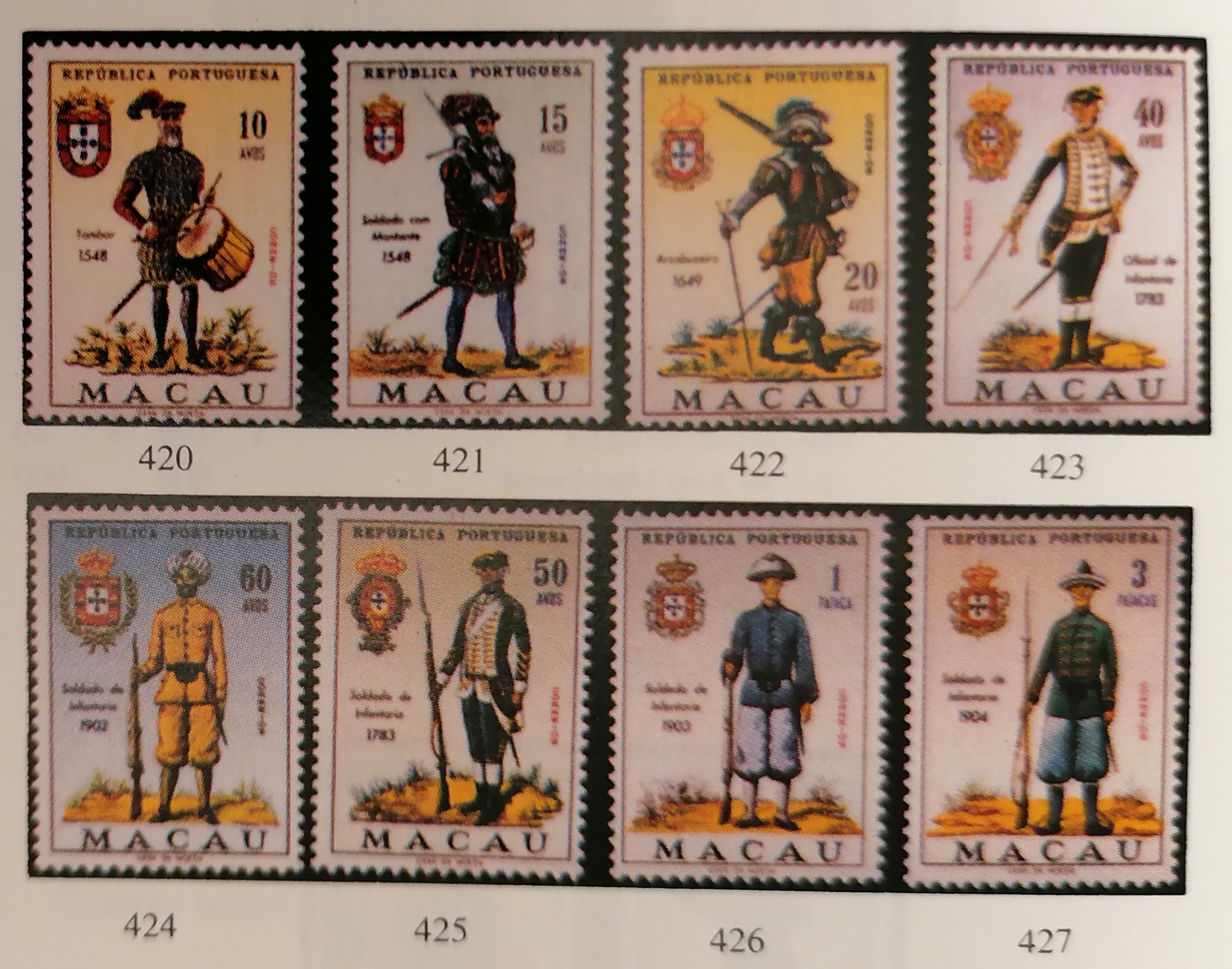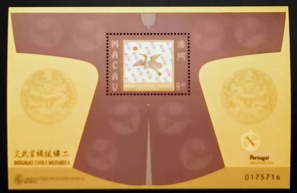 在郵票圖說世界服飾文化一書中提到,澳門在1998年發行了一套文武官補服繡郵票和小型張。