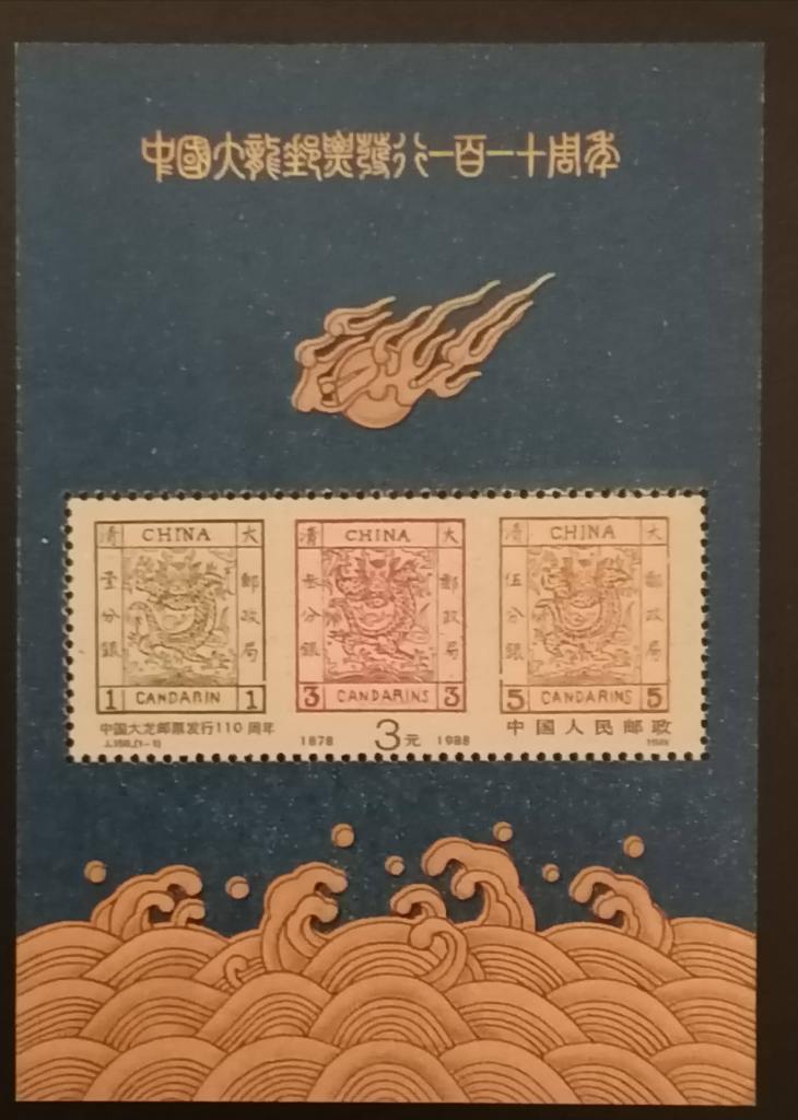 光緒四年1878 ,我國才開始現代郵政 。開始發行郵票的。 在1878年 清政府成立了 郵遞傳訊部,屬於海關, 同時在北京, 天津, 煙台, 牛莊 ,上海等設立郵政機構 ,收寄公私信件 。海關試辦郵政後,在李鴻章的支持下 海關總稅務司的 負責人德瑞林(德國人)於一八七八年七月 由上海海關造冊處印製 三分銀和五分銀郵票 ,之後又印製了一分銀郵票 。這一套郵票共三枚。 郵票圖案正中全部採用五爪 蟠龍的正面像, 作為皇權的象徵 ,但三枚郵票中 蟠龍身下的鰭,四角的雲紋,底部的水紋和水珠都有區別。 顏色分為黃綠色 朱紅色 和橘黃色。 由於這套郵票的 票形比1885年發行的第二套 蟠龍 郵票票覆稍大 ,集郵解俗稱為大龍郵票這是我國第一次發行的郵票。