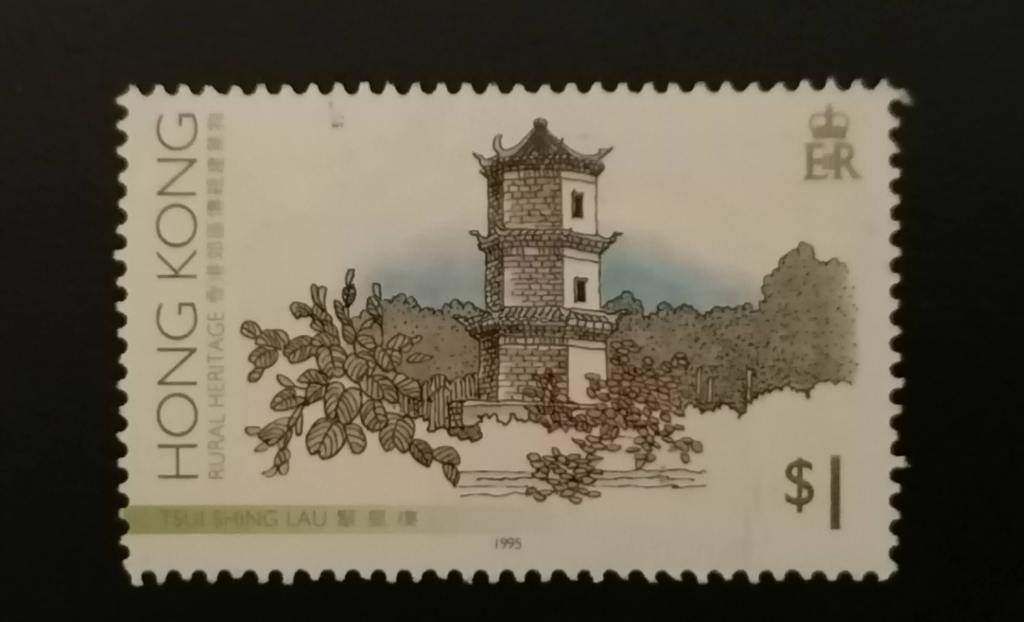 從圖書館借來一本 關於 香港歷史與 郵政的書 ,其中提及新界郊區傳統建築物的聚星樓 Tsui Sing Lau Pagoda 。它是香港現存唯一的古塔 。聚星樓由鄧家族第七世祖鄧顏通所興建已有超過600年歷史 。位置原是河口 面對后海灣 。興建聚星樓是用以擋 北煞震水災及保佑族中子弟在科舉中考取功名 。於2001年12月列為法定古蹟 它以青磚砌成,呈六角形 高13米,塔高三層,每層都有吉祥雕刻字由上至下分別是 凌漢 ,聚星樓 和光射 斗垣。