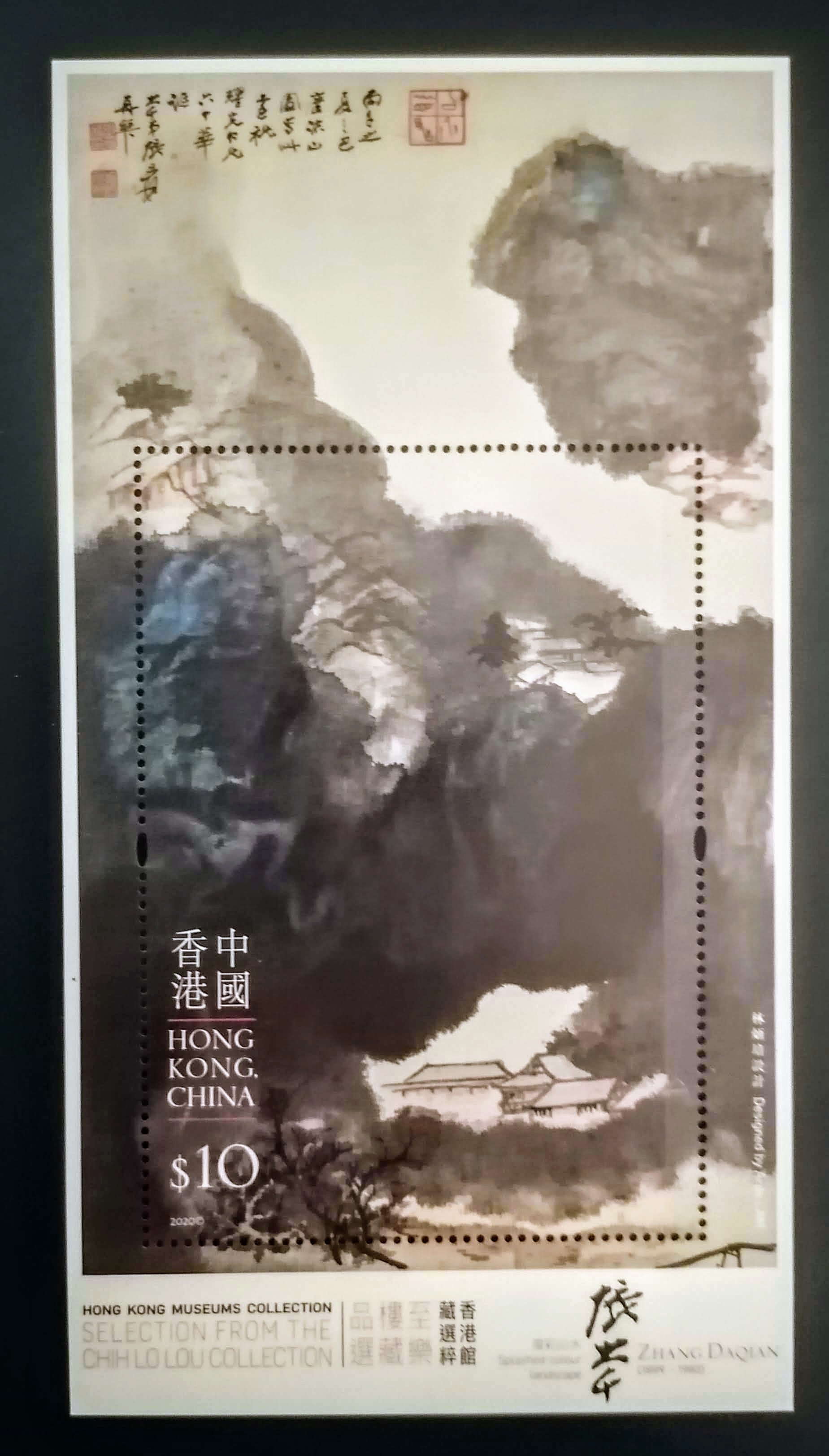 香港郵政發行以「香港館藏選粹──至樂樓藏品選」為題的特別郵票。一套6枚郵票及小型張展示五幅書畫名家的作品,包括張大千《潑彩山水》、唐寅《桃花菴》、石濤《寫黃研旅詩意冊》、陸治《采芝圖》和陳字《山水人物雜冊》,都是獨一無二的瑰寶。
