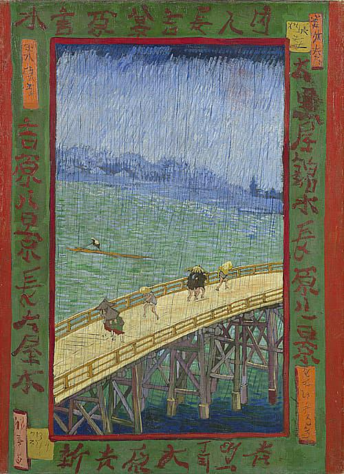 1885年在安特衛普( 比利時最重要的商業中心) 發現了日本的浮世繪板畫 。在巴黎基於日本歌川廣重的木刻創作了雨中橋 The Bridge in the Rain (after Hiroshige),