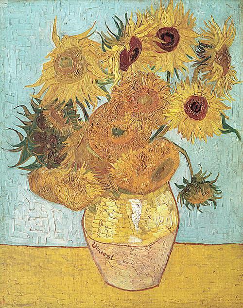 在西方畫家之中, 梵高是其中一個略為被普羅大眾認識的 後印象派 畫家。 他是荷蘭人 。 他一生 坎坷, 在世時只 賣出 一幅紅色的葡萄園 畫 ,據說也是他的弟弟西奧叫朋友幫他買的 ,主要希望可以舒緩他的精神病 。 梵高死後 他的畫經過西奧的遺孀喬安娜不斷推廣 , 暴光, 宣 揚 。梵高才得以成為名家。 在1987年3月 ,他的一幅向日葵在倫敦以接近3985萬美元高價賣出。買主是日本安田保險公司。這幅畫是他 在法國南部阿 爾(Arles) 嘗試在作品中大膽表現顏色的對比 而畫 了幾幅 向日葵 。拍賣的一幅是其中兩幅他喜愛的向日葵畫之一。放在他的黃色房間,迎接朋友高更的探訪。