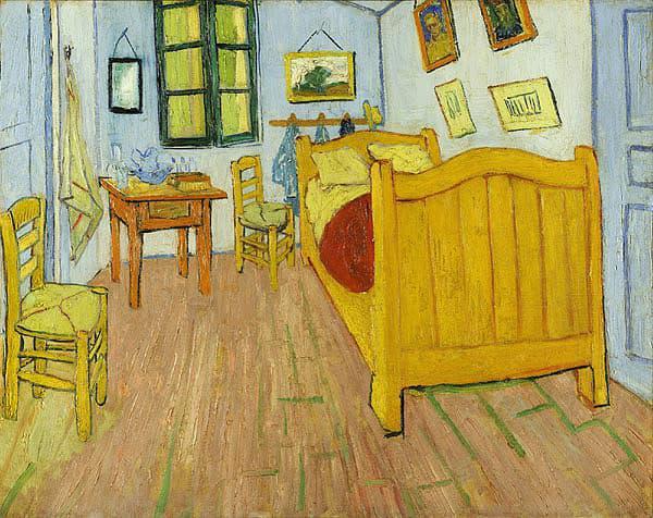 他仍畫出和房中實際的空間有所差異的作品,以等待高更到來。他運用新的手法, 將一大塊被重新分配的色塊 藉著同時存在的對比, 使整幅畫均衡而相親 。不過隱藏於強烈鮮明色彩中的不安定感 也悄悄反映他在悲劇發生前夕的精神狀況 。