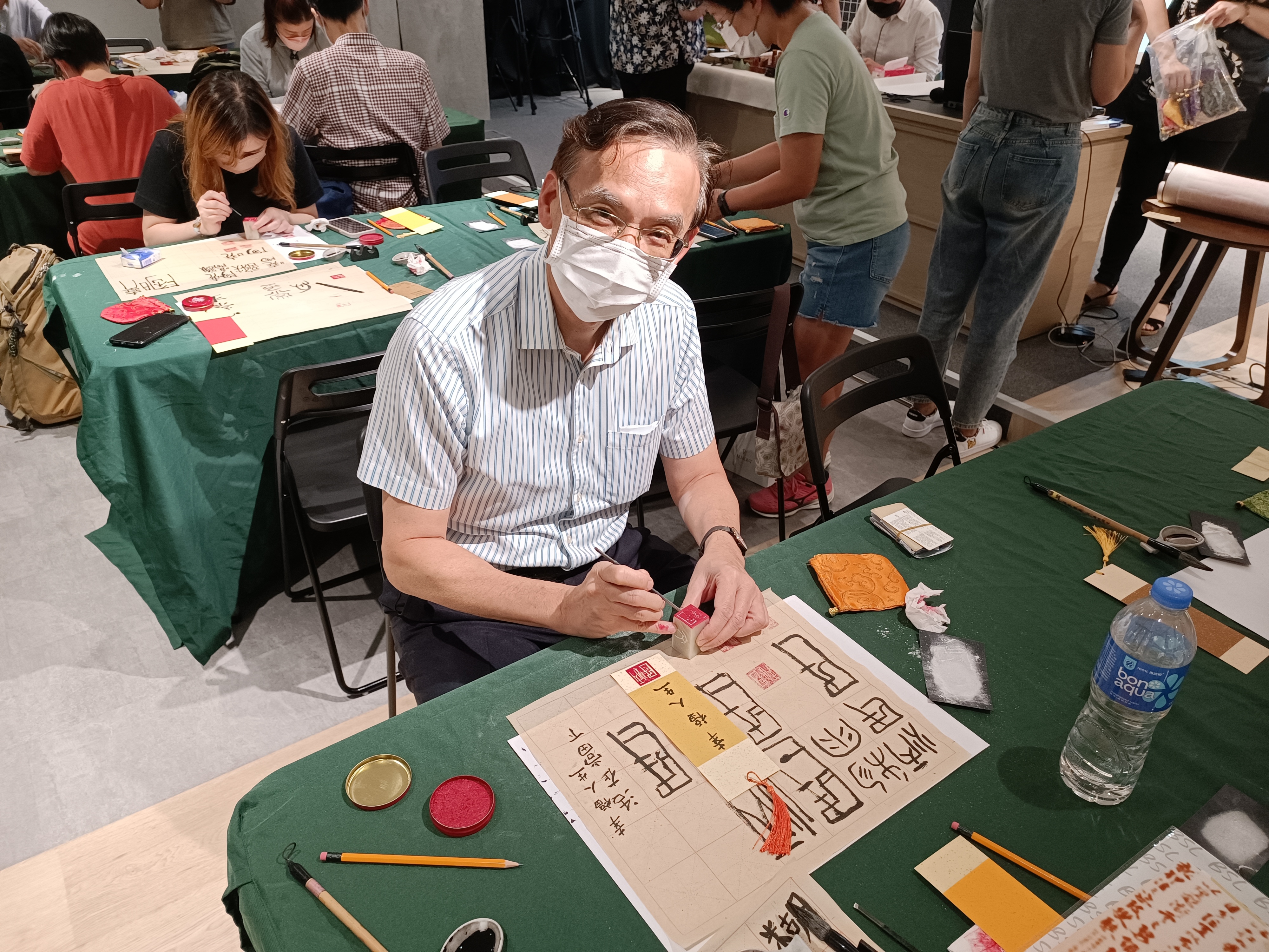 最後我們拿著自己的作品與老師合照,瞬間地完成了兩小時的課程。上完了這個課程 ,我便有信心自己雕刻我的閒章:「 文空」。
