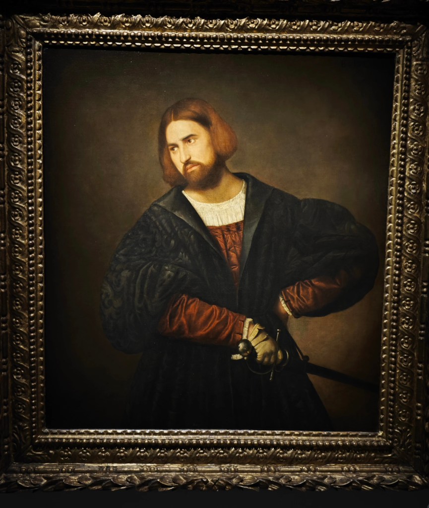 This was painted when Titian was at an old age. He painted himself with his son kneeling