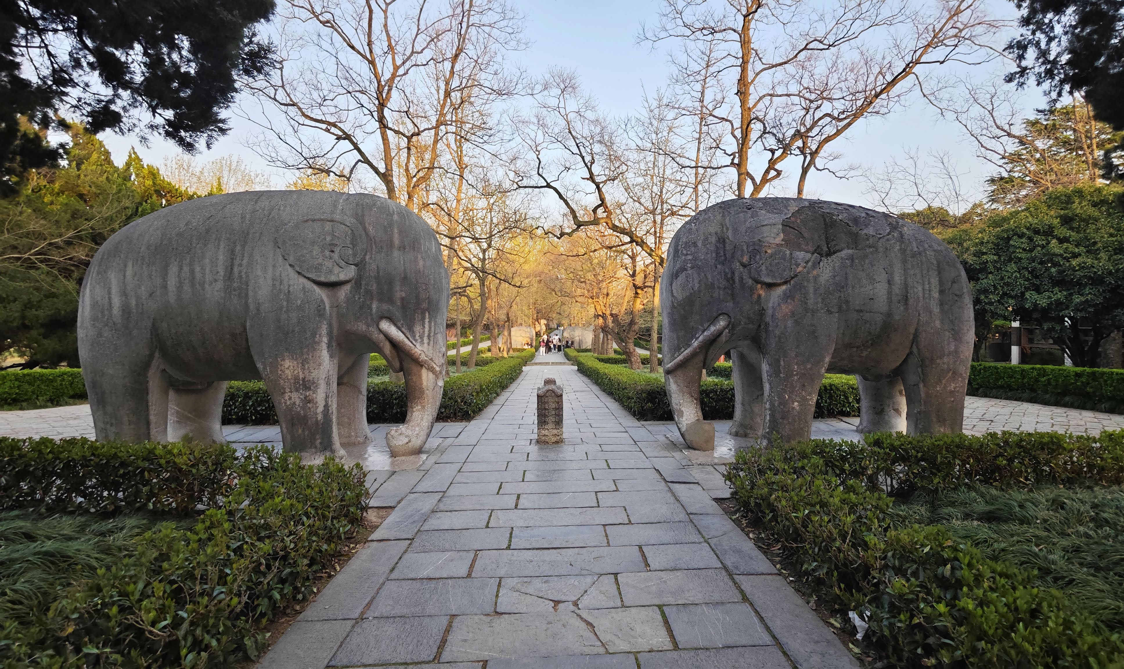 神道石刻是明孝陵的代表性景點之一,分別有獅子、獬豸、駱駝、大象、麒麟、馬六種石獸 。獅子代表皇權的至上威嚴,獬豸是獨角神獸,能用角抵觸有罪之人,駱駝生於沙漠代表明朝彊域廣闊,大象體重龐大,代表大明江山穩固,麒麟象徵如意和吉祥,馬則是君主南征北戰的重要坐騎 。