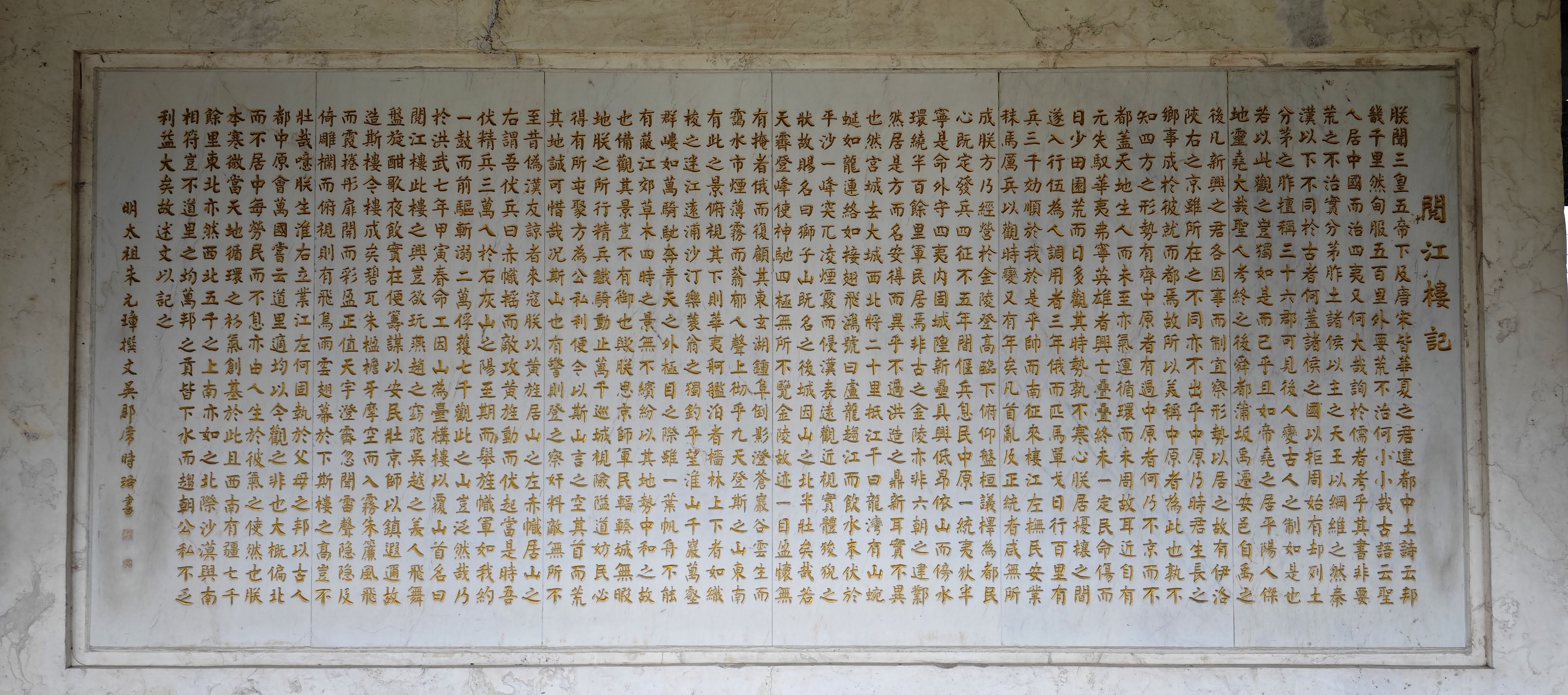 朱元璋在閱江樓記中禪述了建樓的原由、功能、式樣等。閱江樓打下了地基後因為經濟問題,始終未建成。2001年9月閱江樓終於建成並對外開放。
