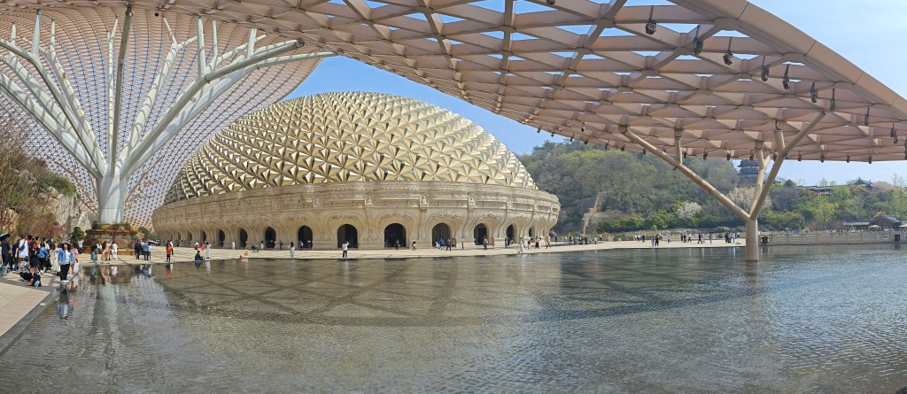 第四天一早前往牛首山佛頂勝景。 牛首山 因山頂南北雙峰似牛角而得名。自南朝起,佛法盛行,牛首山一帶佛教鼎盛,是佛教牛頭禪發祥地,有宏覺寺。公元643年,唐貞觀17年,法融禪師接受禪宗四祖道信之點撥,於幽棲寺北岩建立茅茨禪室並創立牛頭禪宗,後授徒傳法。2010年6月12日,棲霞寺密藏千年的「釋迦牟尼佛佛頂真骨」再次重現。在牛首山遺址公園內建地宮安奉佛頂骨舍利。2015年10月27日,牛首山釋迦牟尼佛頂骨舍利供奉大典舉行,同時牛首山文化旅遊區也落成並開園。