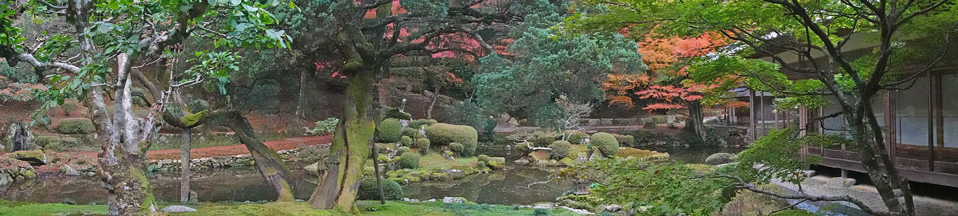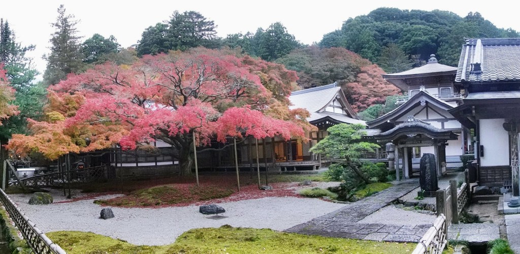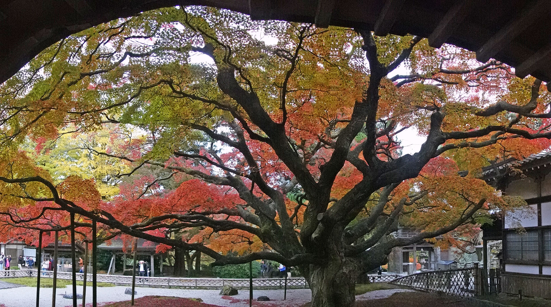 一入寺門便看到大護摩道場中央樹齡超過400年的大楓樹,今天高有8米的大楓樹長滿燦爛紅葉,非常漂亮壯觀 ,另外我們又購票進入開山堂,可以在長廊另一角度觀賞大楓樹。
