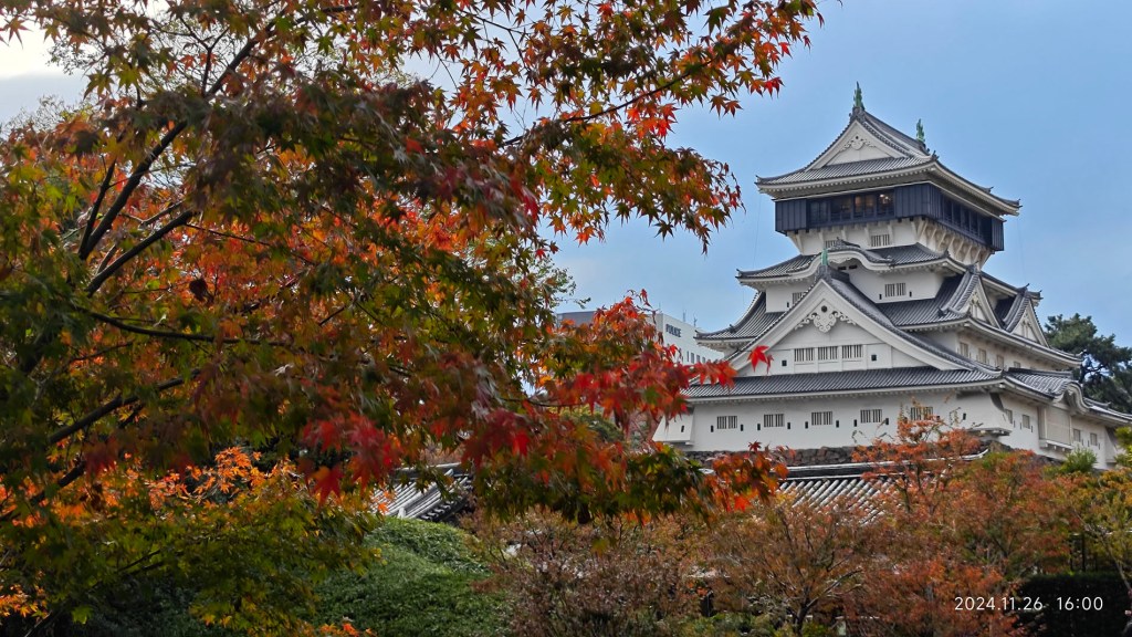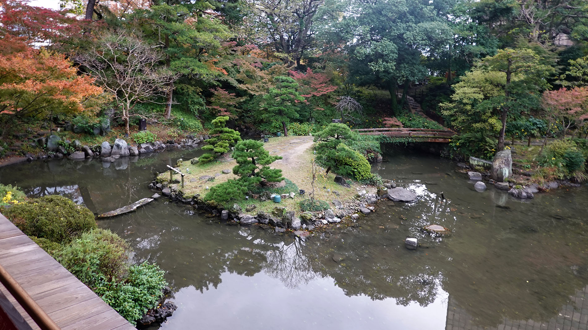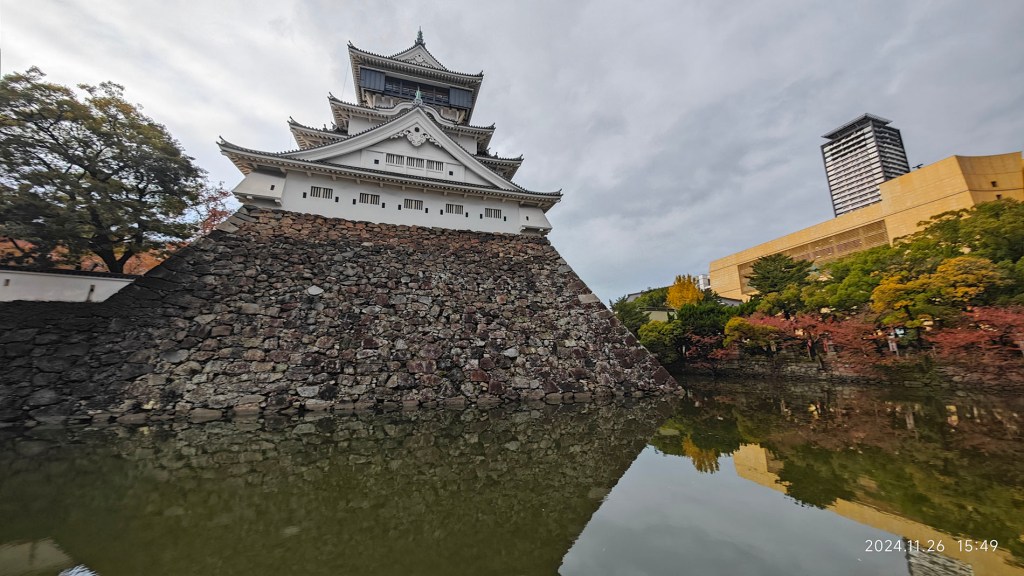 秋天能看到銀杏和楓葉交錯的黃橘色美景。從旅遊書知道附近有小倉城庭園,幸得導遊帶領下,才找到了這座庭園。小笠原家族繼承了細川家族,庭園建築重現了小笠原家族的別墅御苑「御遊園」。在庭園回望小倉城城堡,有秋葉配搭,影出來的相更加美麗。