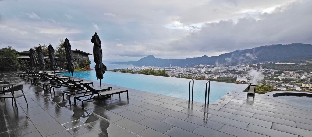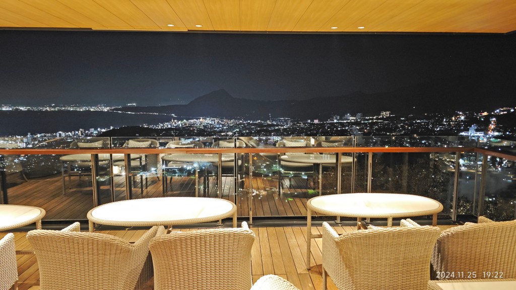在露天溫泉可從高處望到整個別府灣夜景十分美麗,所以第二天早上又再浸多一次溫泉才離開。