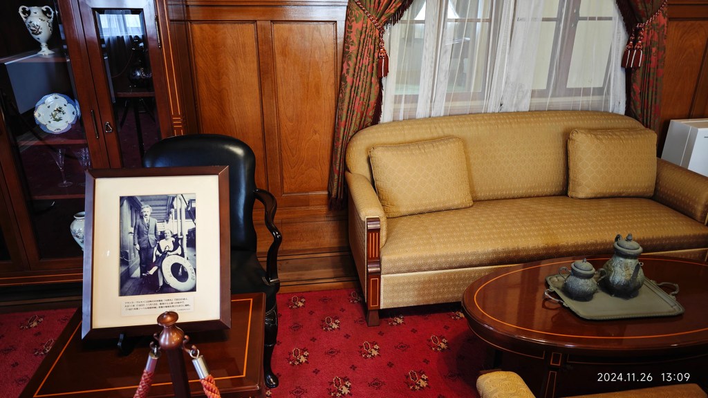 我們先到「舊三井俱樂部博物館」參觀。 俱樂部建於1921年,從前是用來招待和住宿的設施,二樓保留著愛因斯坦夫婦1922年造訪此地演說期間住過的房間,還有展示門司藉女作家林芙美子的作品及收藏品的房間。之後去燒咖哩專賣店食午餐。