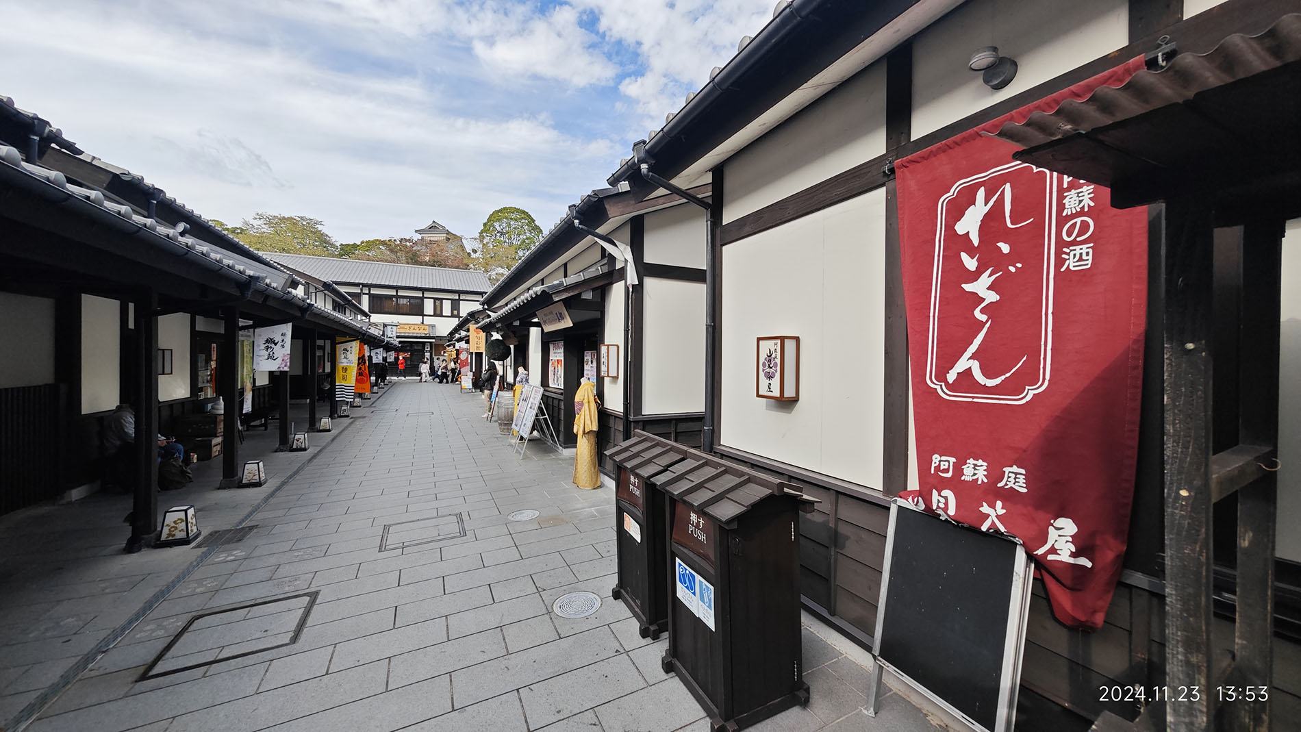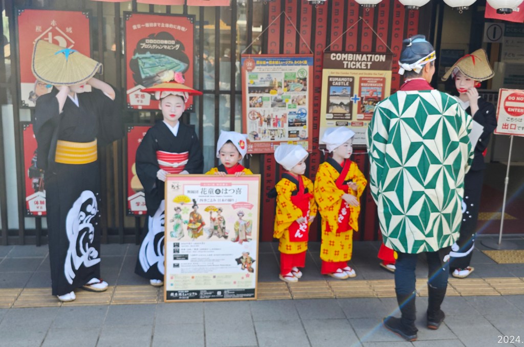 中午到熊本城城下的懷舊古街櫻之小路「城彩苑」,在「山見茶莊」 吃完午飯便參觀 「歷史文化體驗 湧湧座」。館內有免費供應城主古裝拍攝。