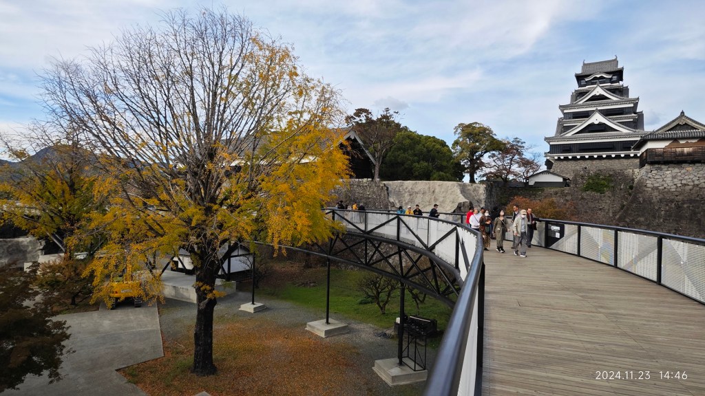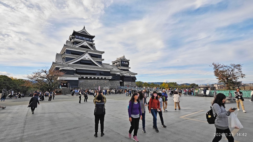 「熊本城」(Kumamoto castle)別稱「銀杏城」,是日本三大名城之一 (名古屋城、大坂城、姫路城/熊本城 )。 前身是室町時代阿蘇家的隈本城加以改建而成,安土桃山時代豐臣政權入主肥後國後,此城即當地藩主的官邸。2016年4月14日開始,熊本縣發生多宗震度逾6級的地震,其中16日的主震達芮氏規模7.3,造成熊本城多處城牆石垣及屋瓦崩落。2021年4月26日,大小天守閣提前修復完成並且開放遊客參觀,而整座城堡的完全修復和復原的完成日期計劃預定在2036年。