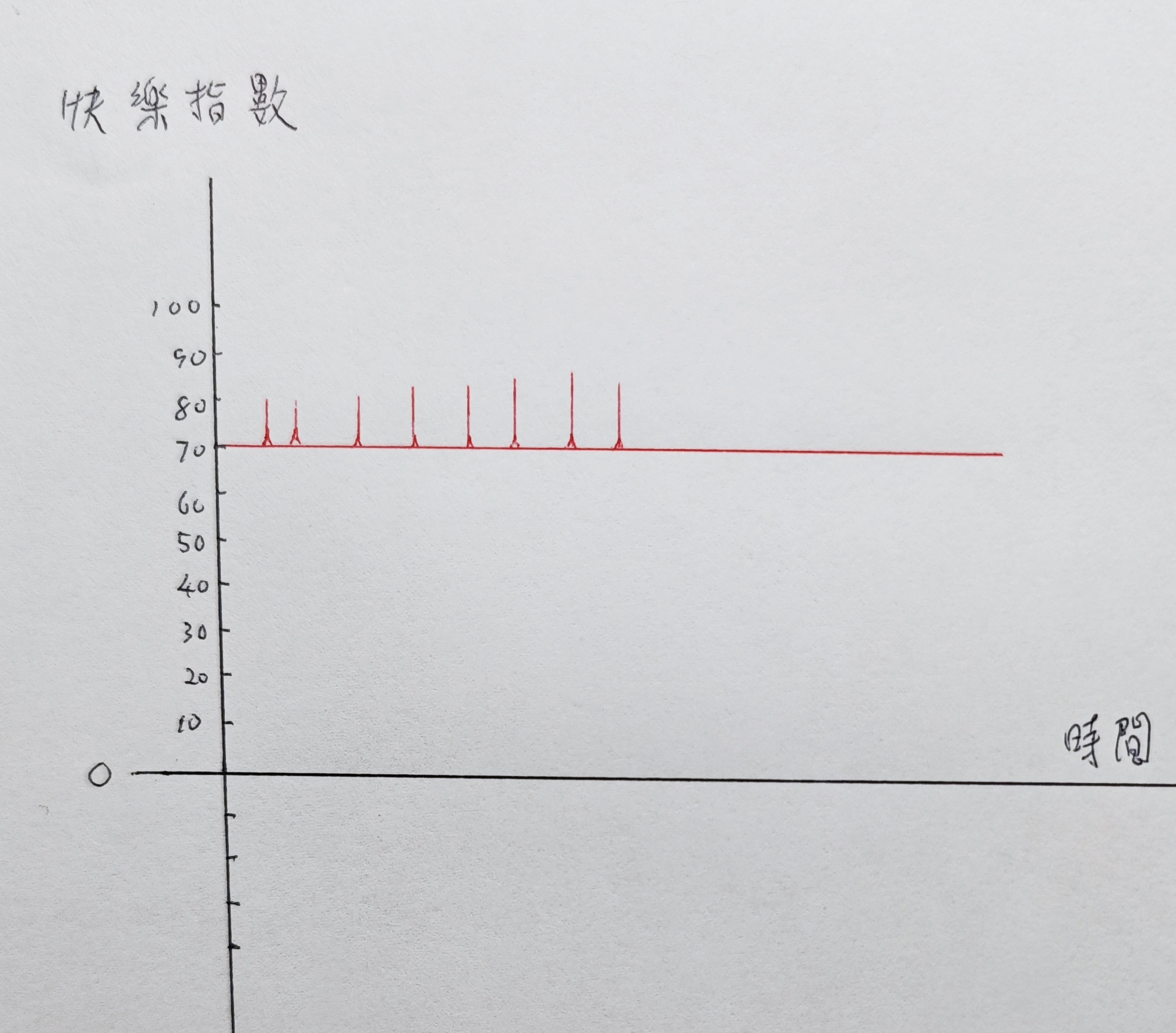 用圖表說明快樂指數, 正 一百是最快樂, 負一百是最痛苦。 零是出生與死亡。 如果患上末期癌病痛楚或被敵人俘虜及被虐待時, 這是最痛苦的時刻(-100)。