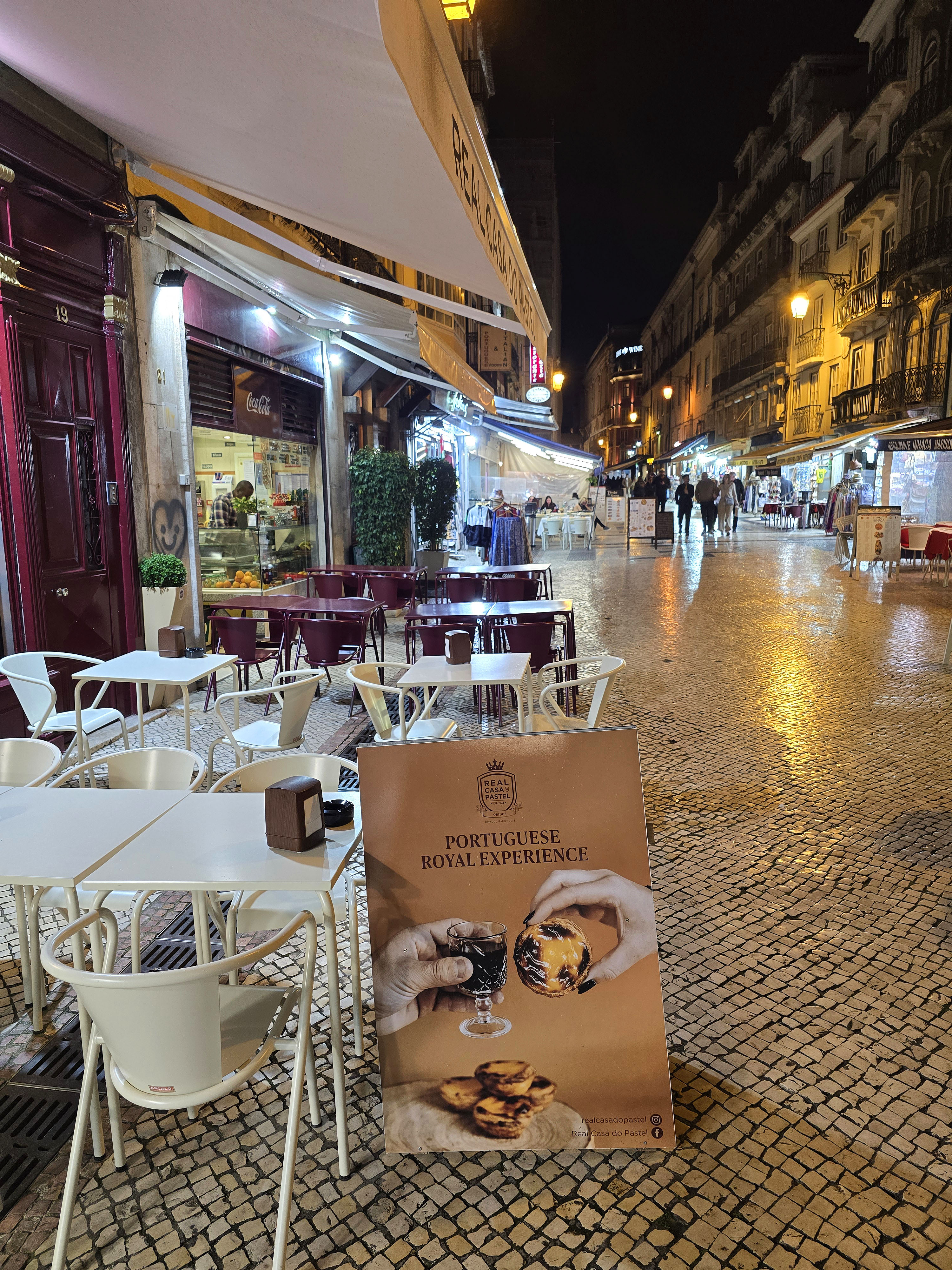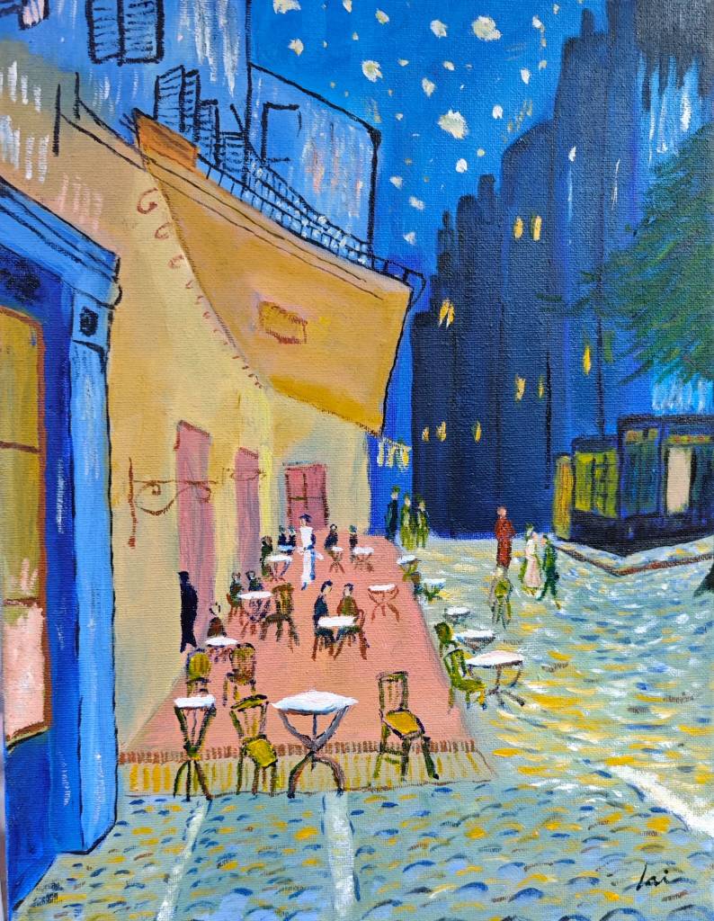 在餐廳前的街道拍的相,很像我畫的梵高Cafe Terrace at Night 油畫 。