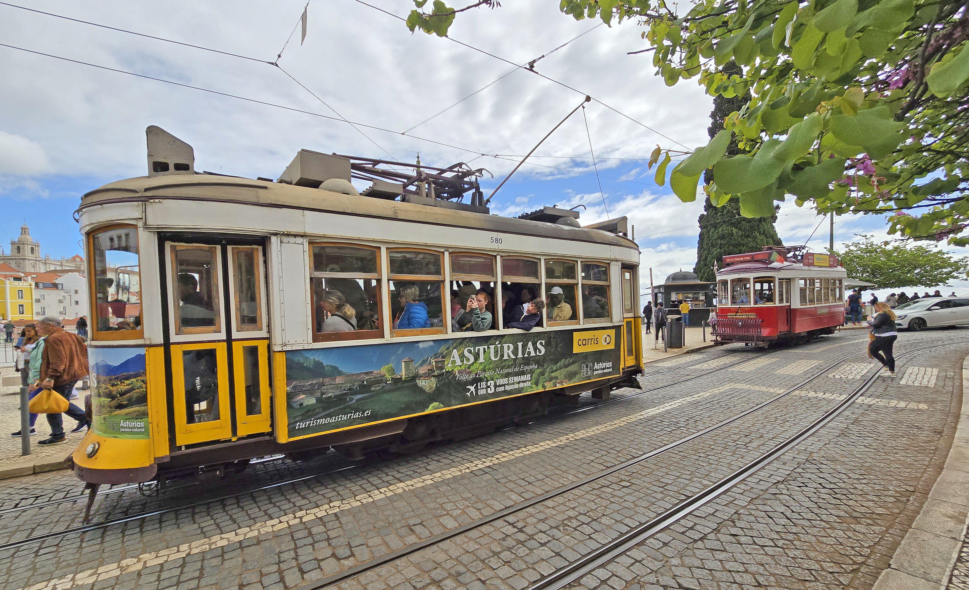 因為酒店離開貝倫塔、 吃聞名葡撻的餐廳和傑洛里摩斯修道院 Mosteiro dos Jeronimos有一段距離,所以吃完早餐後只前往附近的思寵/格拉薩觀景台 Miradouro da Graca,途經Martim Moniz square,看見聞名 的28路老電車,