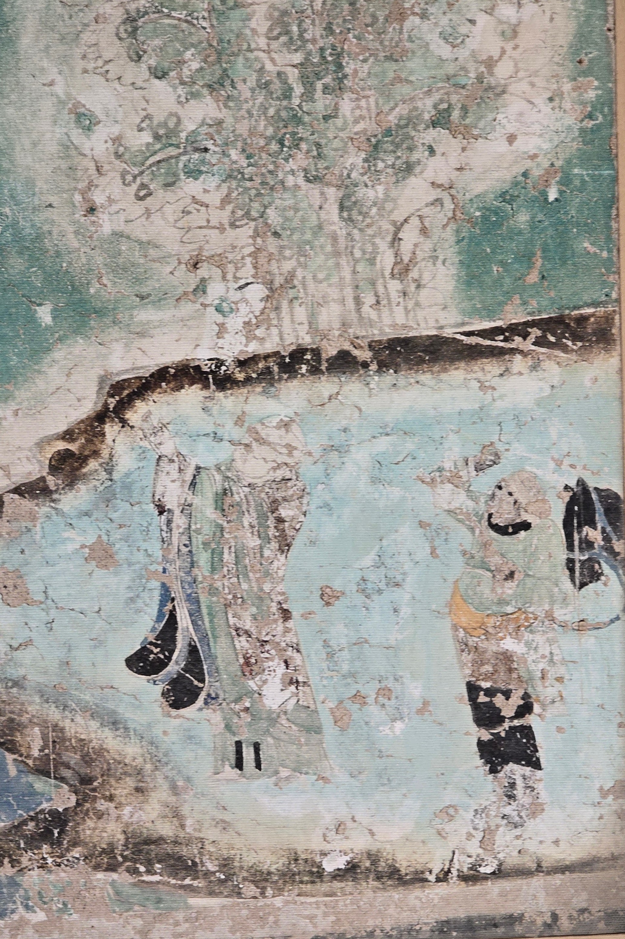 3、因緣故事畫:這是佛門弟子、善男信女和釋迦牟尼度化眾生的故事。與本生故事的區別是:本生只講釋迦牟尼生前故事;而因緣則講佛門弟子、善男信女前世或今世之事。壁畫中主要故事有“五百強盜成佛”、“沙彌守戒自殺”、“善友太子入海取寶”等。故事內容離奇,情節曲折,頗有戲劇性。